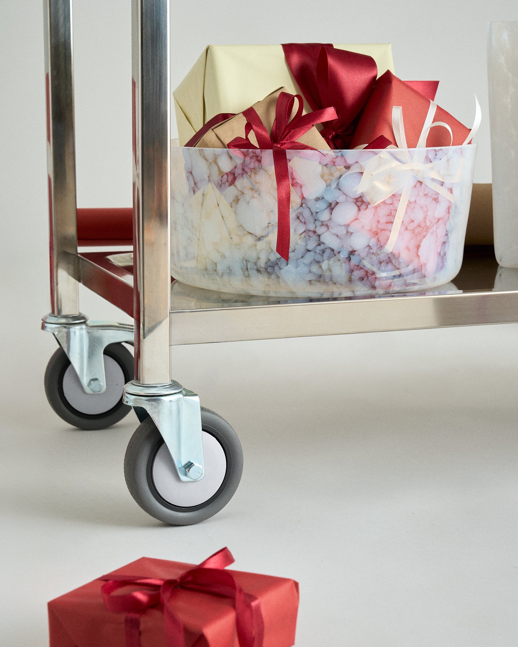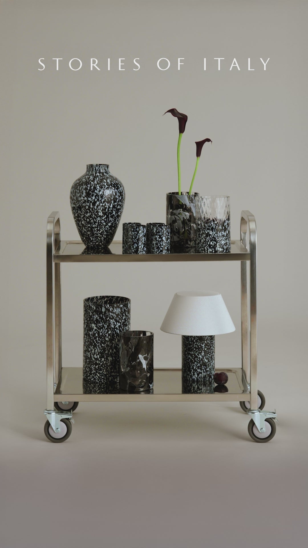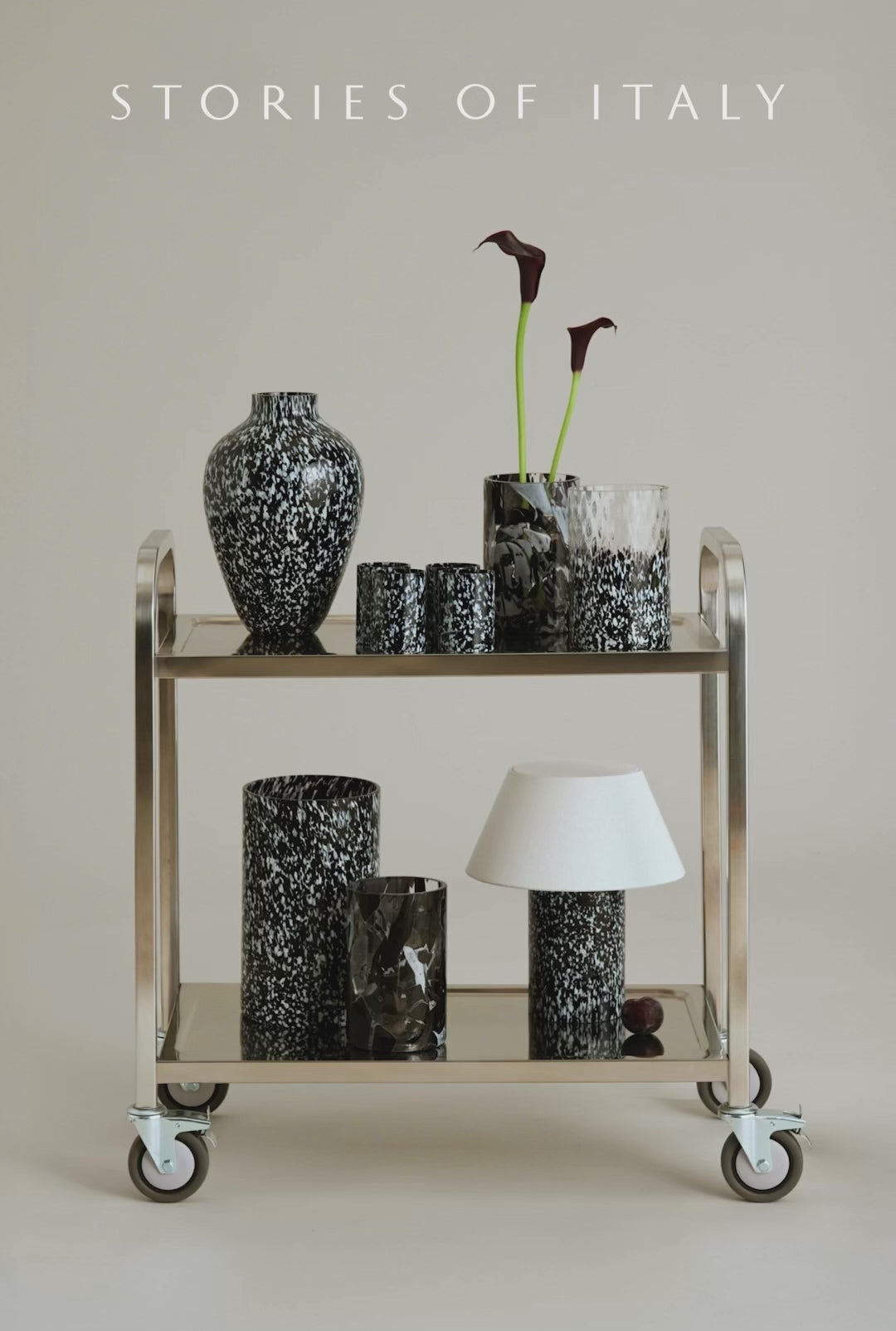 Macchia su Macchia® represents the essence of innovation and artistry, reimagining Venetian glassmaking for the modern world. Its glossy surface and speckled patterns, born from the fusion of vibrant glass granules, elevate contemporary Italian design to new heights. With a variety of shapes, from vases to trays and candles, its bold patterns and minimalist forms inspire a chic lifestyle, reflecting the spirit of Stories of Italy.