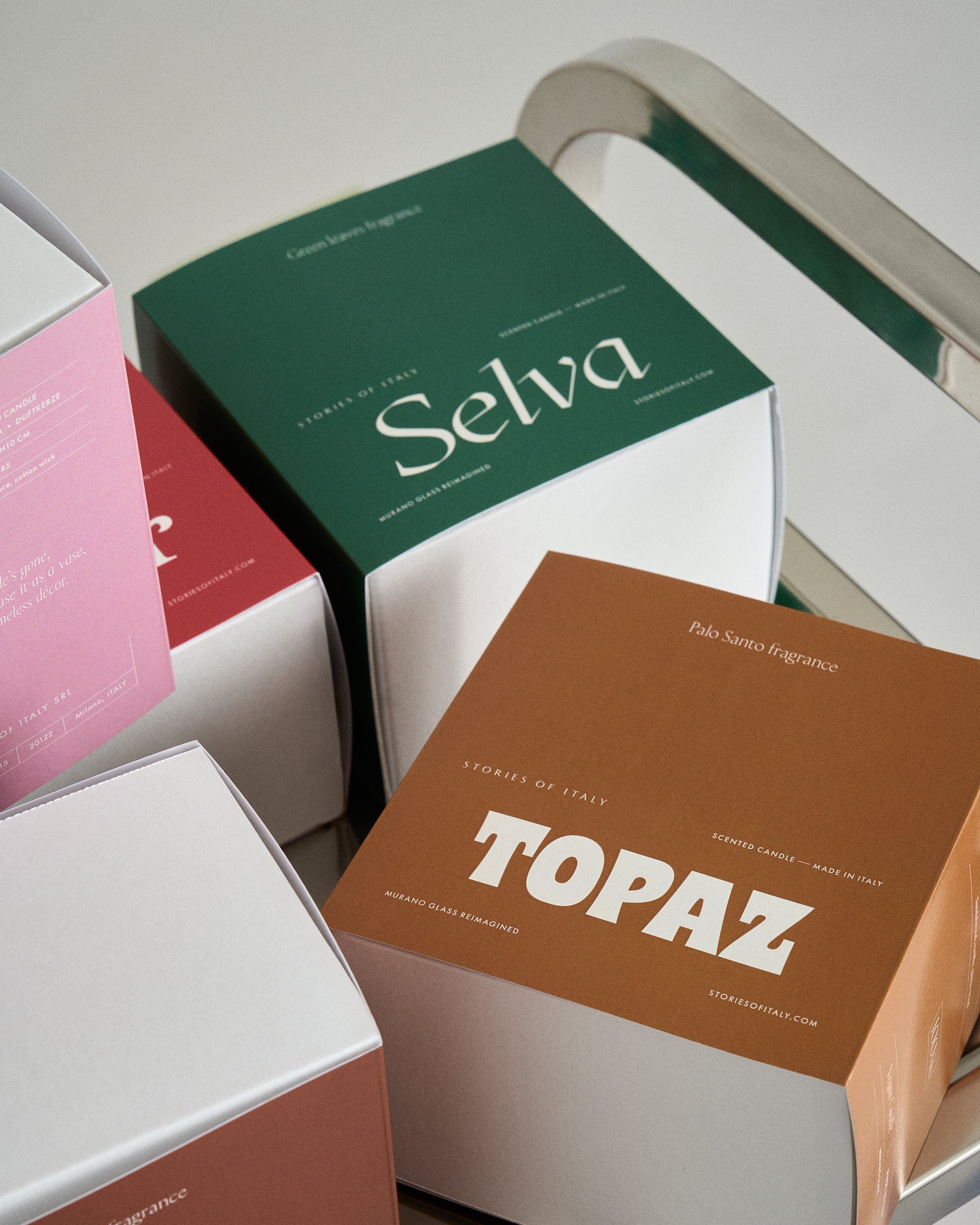 Enjoy the fresh, earthy scent of our Selva candle, inspired by a peaceful forest. Its natural, calming aroma brings a sense of balance and energy to your space. The candle features vibrant green and yellow colors—green for lush leaves and yellow for warmth and light. Handcrafted with premium ingredients, it offers a clean, long-lasting burn. Poured into an elegant Murano glass container, it adds a touch of natural beauty to any room. Light the Selva candle to create a relaxing and peaceful atmosphere, perfect for unwinding or bringing the calm of nature indoors. Let this candle turn your space into a quiet, refreshing oasis.