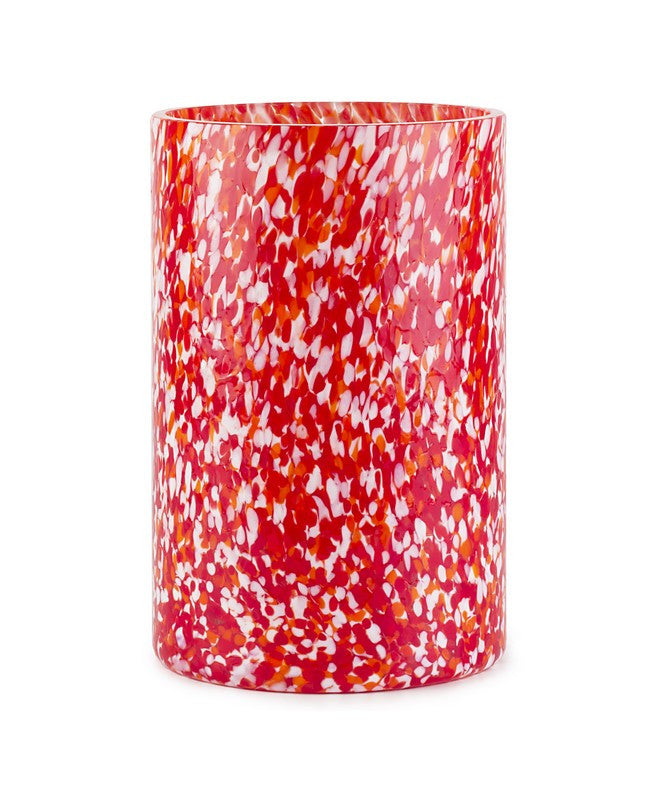 The Macchia Su Macchia collection by Stories of Italy redefines Murano glass through bold contrasts and contemporary design. In this edition, the pairing of ivory and red creates a striking visual balance—ivory conveys timeless elegance, while red introduces a vivid, dynamic energy. Each vase is crafted using a layered glass fusion technique that produces a unique speckled pattern, ensuring that no two pieces are alike. The essential, cylindrical shape enhances the expressive surface, combining minimal form with a maximalist palette. This Murano blown glass vase is both a decorative object and a tribute to Italy’s rich glassmaking heritage.