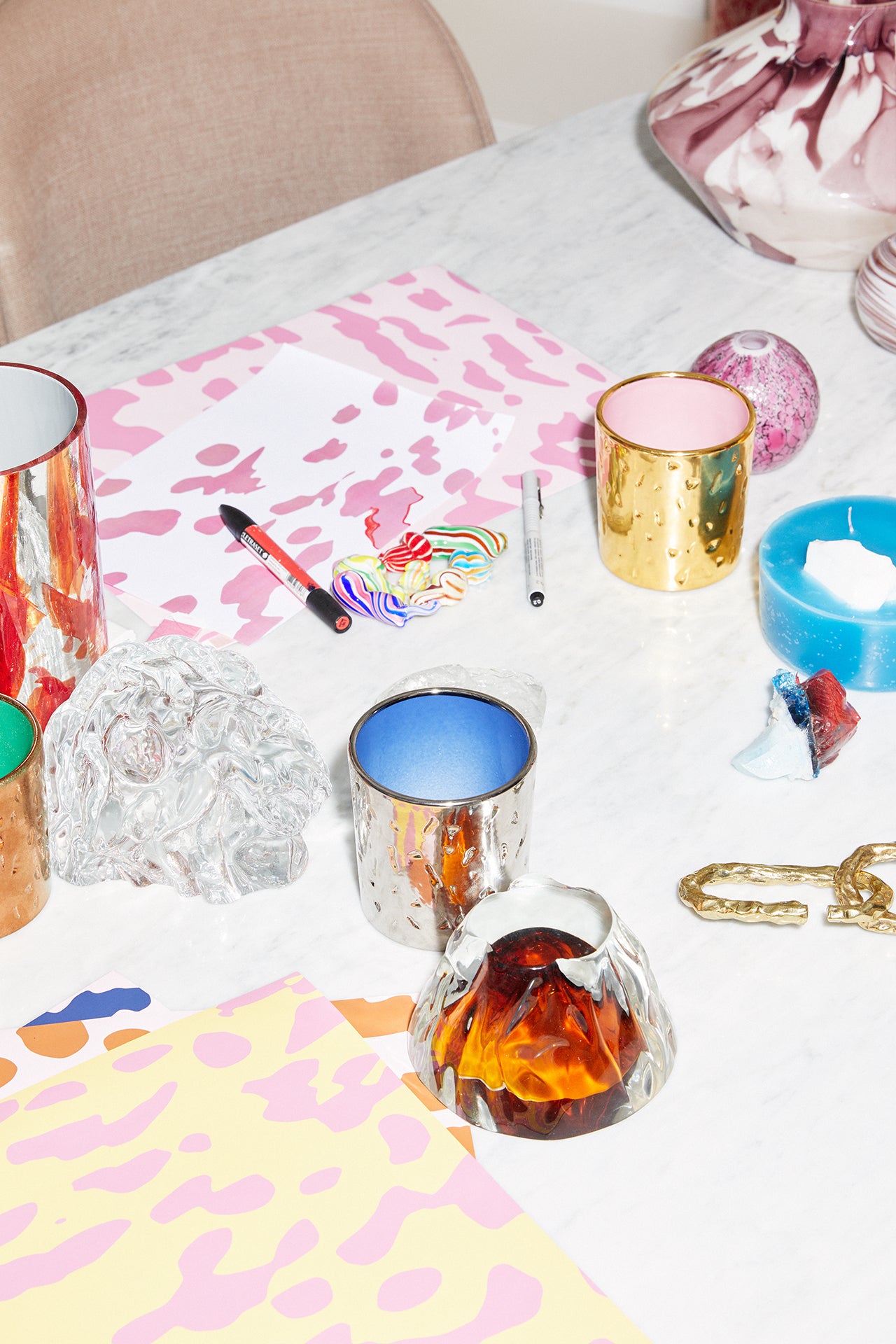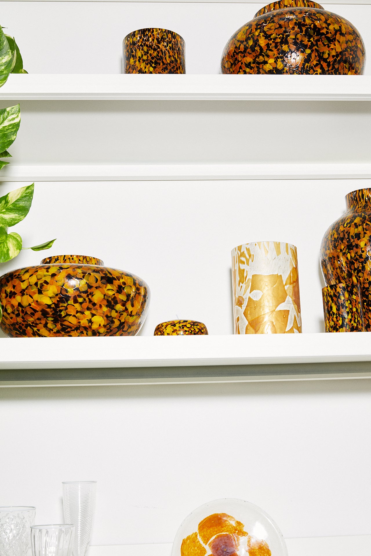 Inspiration comes from Italy's rich archaeological, historical, and cultural heritage. We draw from shared symbols and objects from the past, reinterpreting them in a contemporary manner. Our aesthetic embodies a maximalist approach to color, yet maintains minimalist shapes, with a strong emphasis on Murano blown glass.