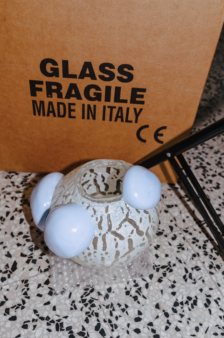 Macchia su Macchia® represents the essence of innovation and artistry, reimagining Venetian glassmaking for the modern world. Its glossy surface and speckled patterns, born from the fusion of vibrant glass granules, elevate contemporary Italian design to new heights. With a variety of shapes, from vases to trays and candles, its bold patterns and minimalist forms inspire a chic lifestyle, reflecting the spirit of Stories of Italy.